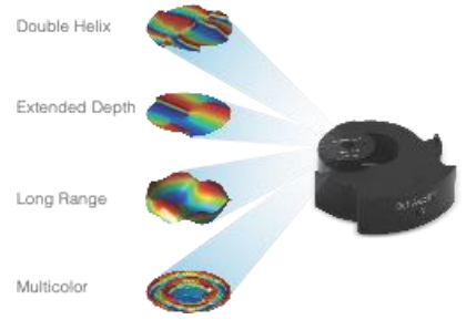 In conjunction with the SPINDLE or SPINDLE² modules, a phase mask inserted into the pupil plane modifies the PSF from the Airy disk of the microscope. With a library of e-PSFs available, performance is optimised by selection of the most appropriate phase mask.