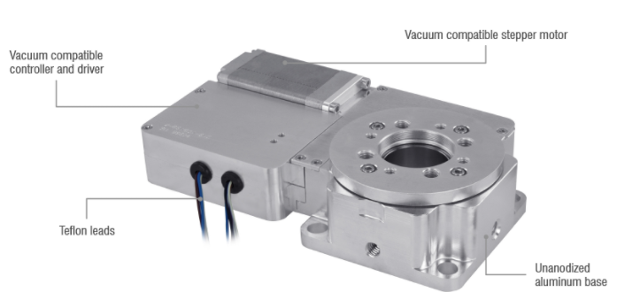 Zaber carefully scrutinize all materials that are built into their products. They replace our motors with vacuum compatible stepper motors that use Teflon leads, special windings, and vacuum compatible lubricant and greases. All of their daisy-chaining cables also utilize Teflon insulated wires.