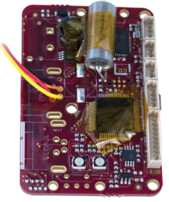 When electronics are required in a vacuum chamber, such as built-in controllers (as seen in Figure 1), they must be prepared for the expected vacuum level. Zaber replace any electrolytic capacitors with tantalum, and have the PCBs specially treated and manufactured to further reduce outgassing. An example of a high vacuum PCB is shown in Figure 4.