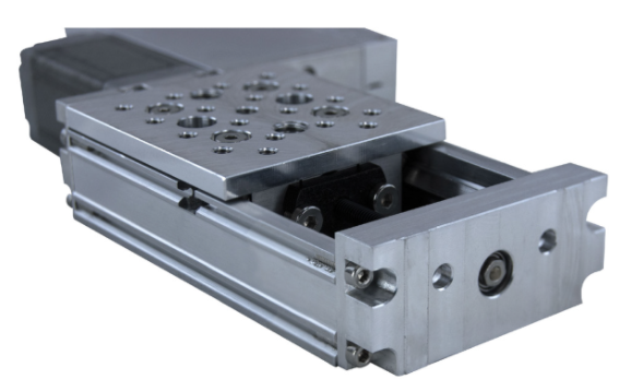 Standard Zaber devices use aluminum components that are hardened through a process called anodizing. Zaber’s vacuum devices are un-anodized because the anodized layer creates a porous surface that traps gasses and moisture more easily, resulting in more outgassing and longer pump down times. Figure 5 is an example of an un-anodized extrusion.