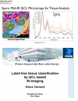 Hyperspectral imaging in the mid-infrared, especially in the so called “fingerprint region”, allows spatially resolved discrimination between normal and malignant tissue when compared to FTIR, QCLs can be much more suited, and enable far less complexity. They are smaller and lighter and are therefore more suited to the use of hand-held devices, and do not have to heat up like FTIR so can dramatically reduce the time to take data.