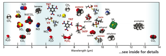 - Defence & Security:- Stand-off detection and spectroscopy of trace chemicals