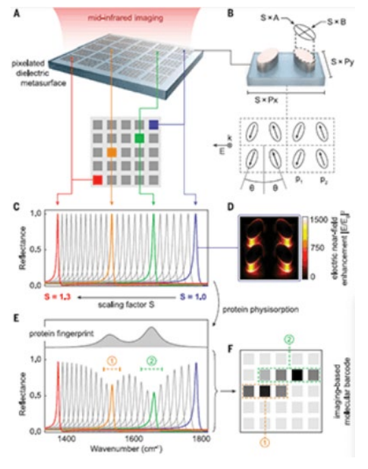 The new image-based sensor leverages wide-field QCL imaging and functionalized nanofabricated metasurfaces to perform massively parallel sensing of protein and polymer mixture monolayers.