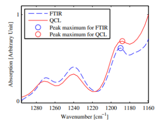 Using this method and a QCL as the excitation source, more highly reproducible results at better resolution when compared to photo-thermal IR spectroscopy (PTIR) are obtained.