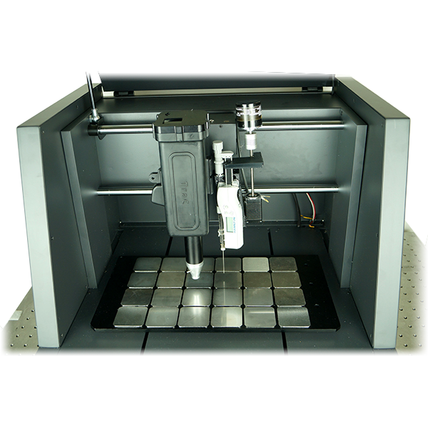 The advantage of ChemCal chemical printer and mapper over other multi-nozzle inkjet array methods is that it can deposit highly accurate concentrations of materials in both uniform and non-uniform concentrations or gradients to simulate situations in which trace contamination detectors are employed.