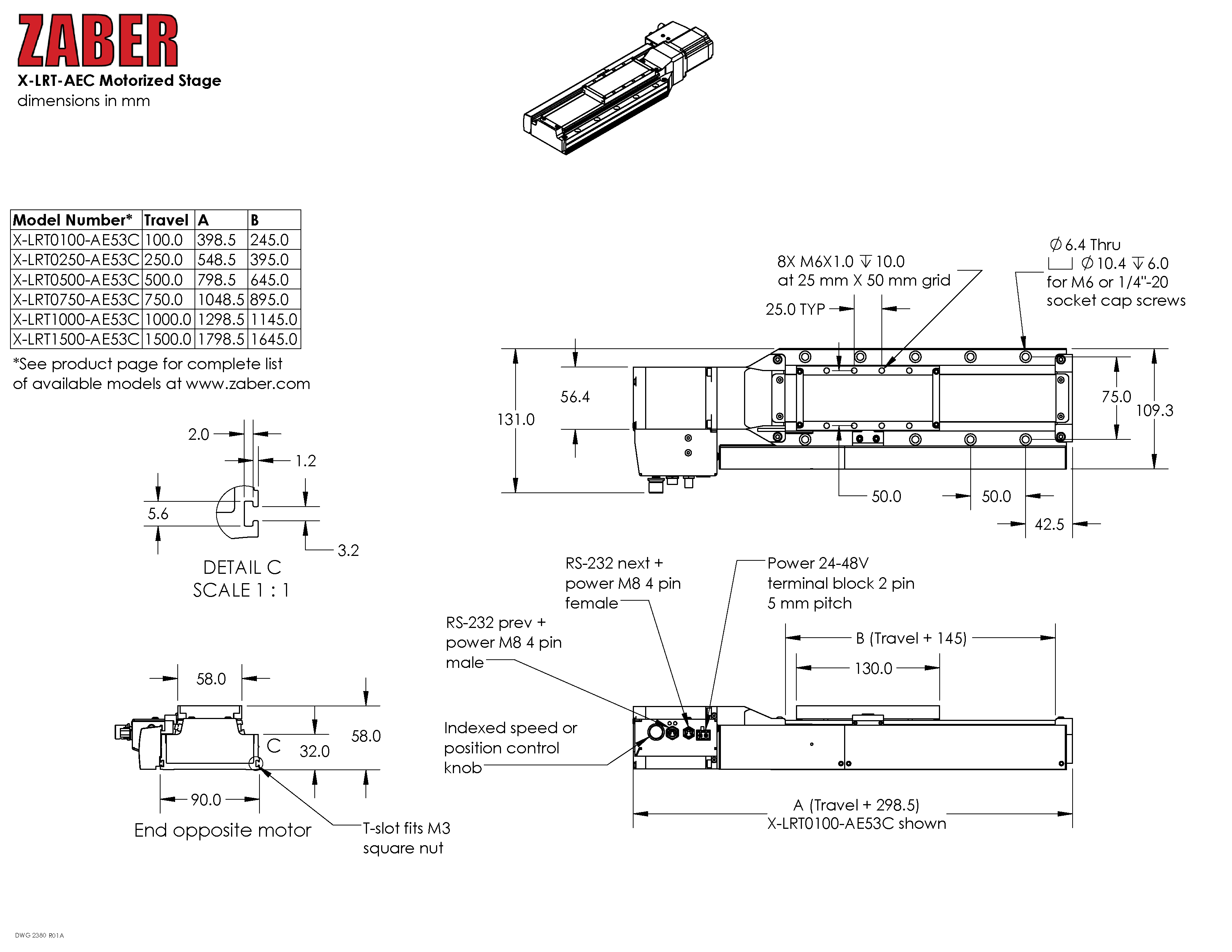 X-LRT-AEC devices are stand-alone units requiring only a standard 48 V power supply. They connect to the RS-232 port or USB port of any computer, and can be daisy-chained with any other Zaber Technologies products. Like all of Zaber Technologies’ products, the X-LRT-AEC Series is designed to be ‘plug and play’ and very easy to set up and operate.