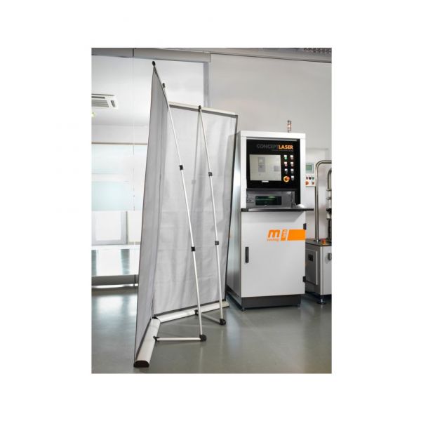 The Roll-up is characterized by a unique flexibility combined with high stability. The laser safety Roll-up consists of a single layer version of the laser safety curtain SHELTER-LIGHT. The lightweight module is held in place by two metal profiles and put upright by means of special metal expanding systems. Together with interconnecting elements, several segments can be combined to a large laser safety wall.
