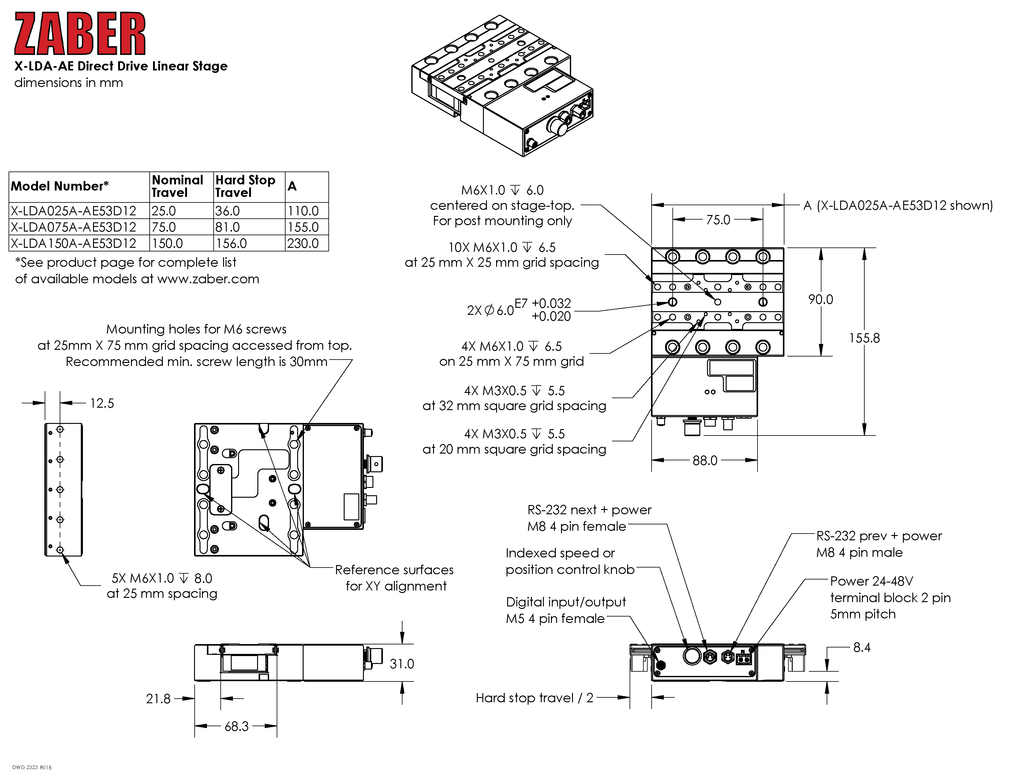 9. X-LDA-AE stages include alignment features for precision assembly of orthogonal XY configurations without additional hardware.