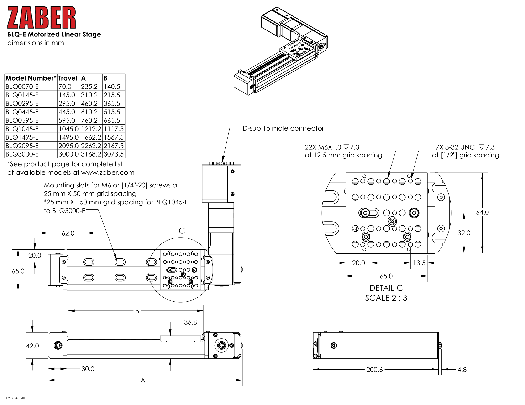 Zaber Technologies’ BLQ-E Series products are computer-controlled, motorized linear stages with integrated stepper motors and motor encoders. These stages are capable of speeds up to 2.0 m/s and can easily be mounted in XY configuration without additional hardware. Some multi-axis configurations may require additional accessories; please contact Zaber Technologies Technical Support to ensure the correct ones are selected.