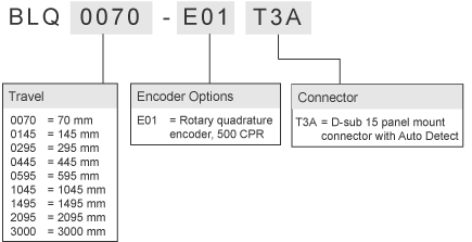 BLQ0145-E01T3A 1 Motorized, belt-driven, linear stage, integrated motor encoder, 145 mm travel 1.85 kg
