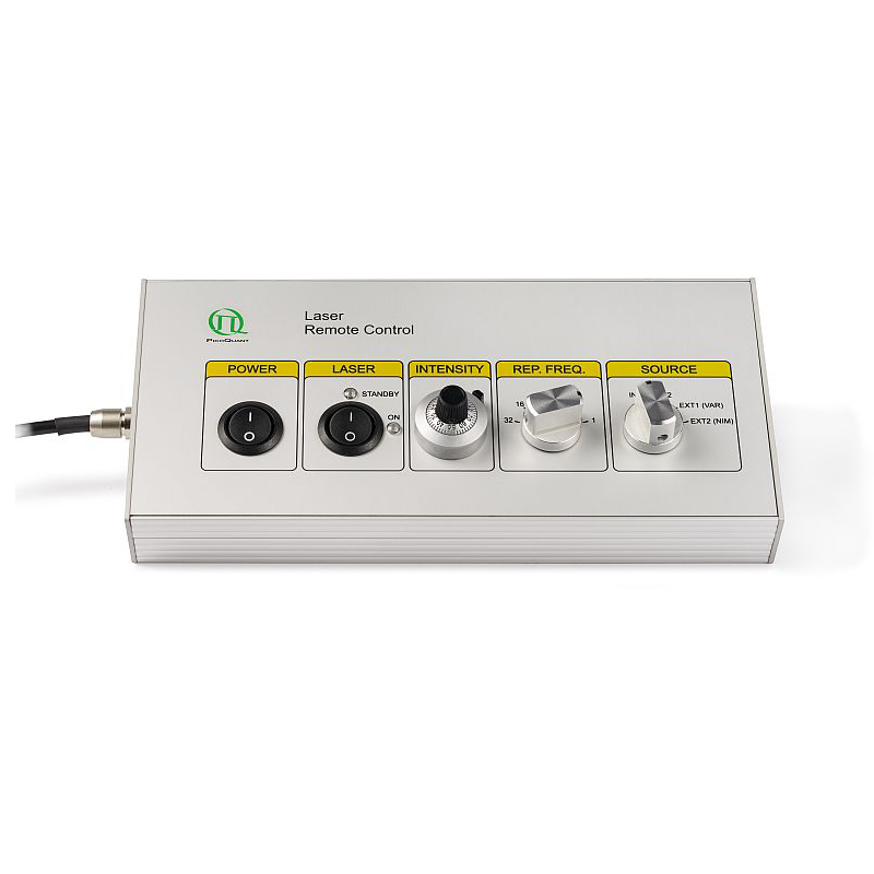 The VisUV picosecond laser is a stand alone device with a special design optimised for maximum heat dissipation. It includes all driving functions of the established PDL series laser driver such as choice of repetition rate and trigger source. An optional remote control for the VisUV allows to set the trigger source, the repetition rate, and the general output power of the laser.