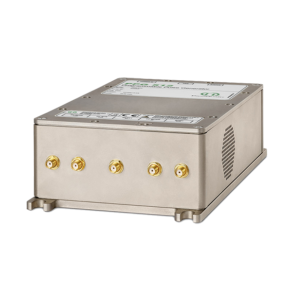 The output of the internal Digital to Analog Converter (DAC) is amplified by a broadband two-stage amplifier, which generates the output voltages with a maximum amplitude around +12 V (into 50 Ohm). Other amplitudes are available on request.