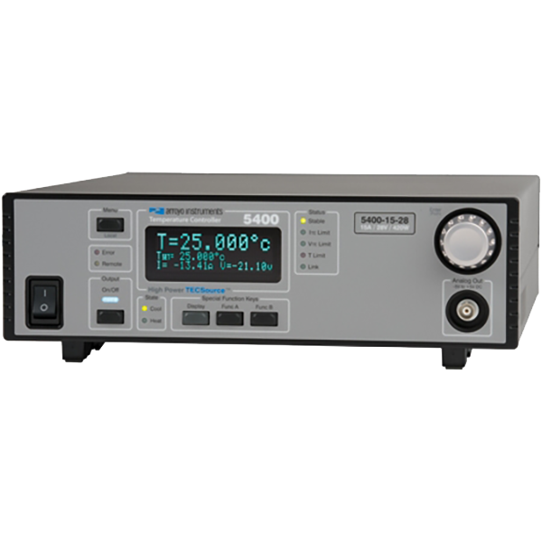 The 5400 Series TECSource temperature controllers bring precision temperature control to your laser application, with up to 960 W of TEC power. Every TECSource features ultra-stable performance and fully adjustable PID control.