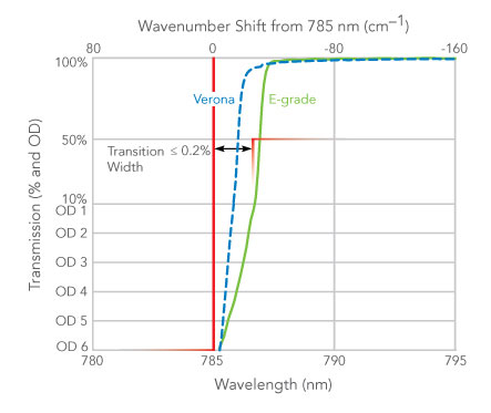 Verona’s improved transition width enables you to collect more Raman signal closer to the laser line for higher resolution images and spectra. We offer the best transition on the market, backed by the Kola Deep™ Spectral Measurement System.